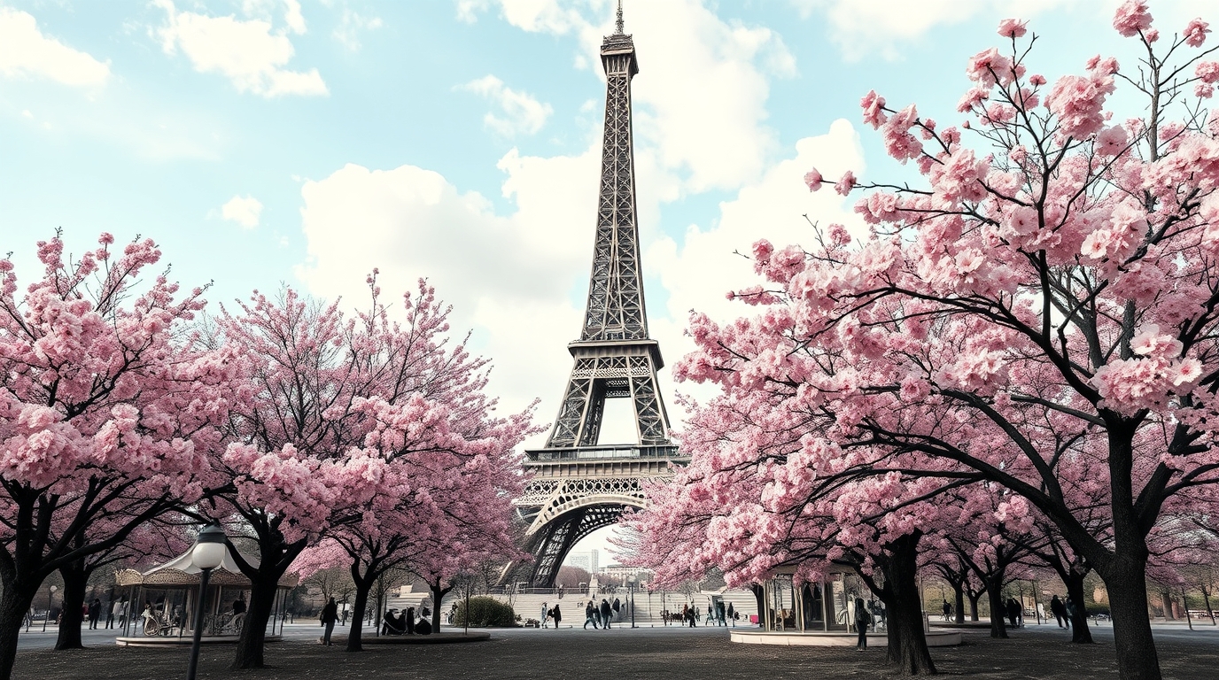 특히 세느강변과 에펠탑 주변은 벚꽃이 만개하는 대표적인 명소입니다.